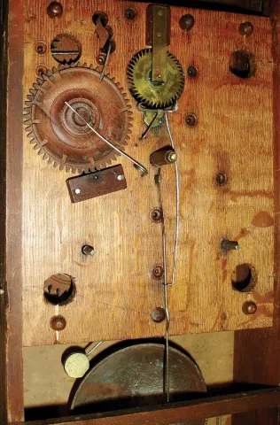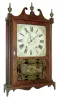 Henry Loomis, Bristol, Conn., 30 hours, time and strike, weight driven wood movement pillar & scroll shelf clock, c1830