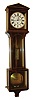 good overall, front frame on lower box loose, 19th century Vienna regulator movement and dial, dial with minor scratches, movement ticks, weight with bad dent, bent hook, and dislodged cap, Ht 40 1/2", a nice reproduction of a very pricey clock
