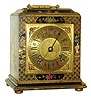 J.J.Elliott, London, England, Chinoiserie 8 days, time and strike, bracket clock, top platform balance escapement, c1930. the ornate decorated case is in very nice condition with no losses or damage. There never was a bezel and glass over the fancy brass dial. The movement rear plate is stamped "J.J.E., England". The heavy movement ticks and strikes, and has a later little bottom-mount brace to help keep it in place. Ht to top of handle 10"
