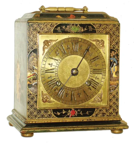 J.J.Elliott, London, England, Chinoiserie 8 days, time and strike, bracket clock, top platform balance escapement, c1930.