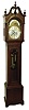 Evans, Birmingham, England, tall clock, 8 days, time and bell and gong strike, brass weight driven movement in a mahogany case with broken arch top, carving above beveled trunk door and brass dial with engraved silver chapter ring, date calendar and moon