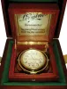 outer box later, heavily sanded and with poor finish, inner box with some fading, minor scratches and dings, and a few very fine splits, lock missing, plaque with some dirt and spotting, gimbal and bowl good, with minor scratches, dial good with minor dirt and fine scratches, hands very good, movement with minor scratches, minor dust and dirt, running, needs service