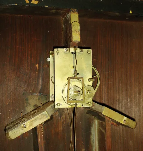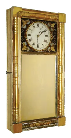 Unknown, 8 days, weight driven brass movement New Hampshire mirror timepiece, c1830