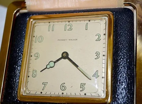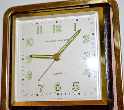 4 Vintage Traveling Alarm Clocks Phinney Walker in closeable cases. Not tested.