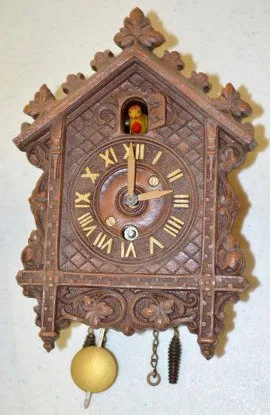 3 Lux Bird Pendulette Clocks 1.) Green and black with a brown bird. 2.) Brown and tan with a red bird. 3.) Green and black with a tan and black bird. Not tested.