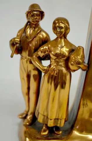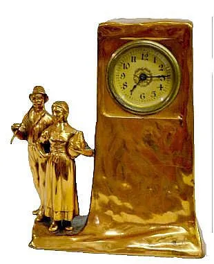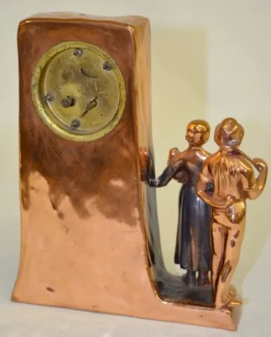 B & W Copper Clad Harvest Clock With a key wind movement and an unmarked paper dial. The bottom of the case is marked "324 B & W". The clock is running at this time. 7 1/2" Tall