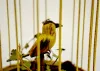Animated Musical Bird in Cage In a brass cage. When wound the bird bobs and turns. (Needs help.) 10" Tall