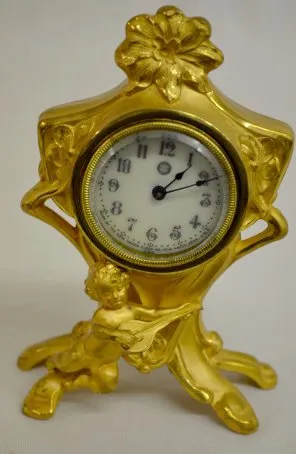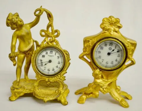 1.) With a marked porcelain dial; in a floral-molded case with a cherub playing a mandolin. (The winding arbor is stripped.) 2.) "Eldora" with a marke...