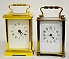 2 Brass Carriage Clocks 2 French Brass Carriage Clocks: 1.) With a 6 jeweled movement. (The dial is damaged.) 2.) (The side glass is loose and the back glass is damaged.) Tallest - 5 1/2"