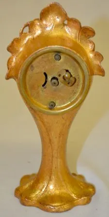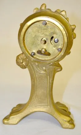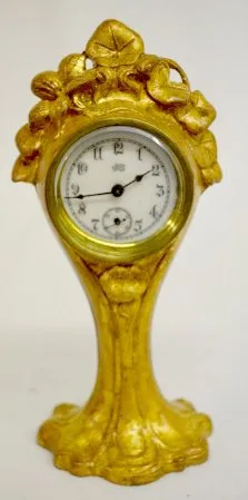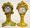 2 Antique Floral Novelty Clocks 1.) Jennings Bros. with a porcelain dial with seconds bit. (Has been re-patinated.) 2.) American Chime Clock Co. with a marked dial. Not tested. Tallest - 7 1/4"