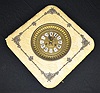 Antique Brass & Cloth Hanging Clock With a T & S movement and a brass dial with cartouche numerals. (The cloth covering is rough.) 21" Square; Dial - 6" Diameter Not tested.