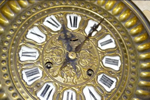 Antique Brass & Cloth Hanging Clock