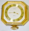 1.) In an octagonal case 2 3/4" x 2 3/4" excluding the winder. It has a gold colored ring dial with black features on a white background. The watch winds and works properly. (We were unable to open the watch. The back of the case has an area of pitting.) 2.) Round with gold and black features; 2 3/4" Wide. The watch winds and works properly. (The dial is dirtied because the crystal is missing.)