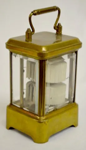 Plato Digital Brass Carriage Clock (The two beveled panels have chips. The time indicator is loose inside the case.) Not tested. 6" Tall