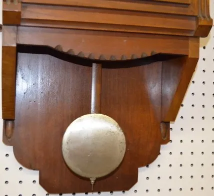 West Minster Chimes Free Swinger Wall Clock: In a mahogany case. (The dial and pendulum are worn. There is a minor strip of top trim missing.) 29" Tall; 16" Wide; Dial - 7" Diameter Not tested