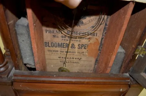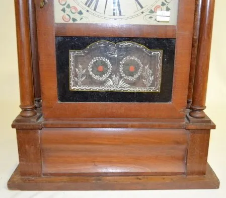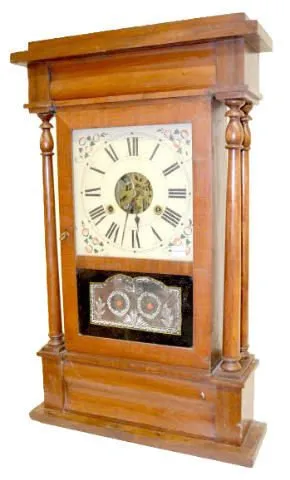 Bloomer & Sperry 2 Weight Shelf Clock 30 Hour, 2 weight with a painted metal dial and a good label. Not tested. 26" Tall