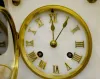 With a T & S movement, raised numerals on the dial, and brass trim. (There are minor chips to the case.) 11" Tall x 10 1/2" Wide Not tested.