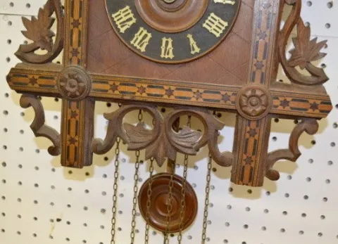 Antique Inlaid 3 Wt. Cuckoo & Quail Clock