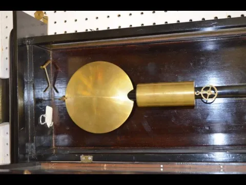 With seconds bit, a 2 piece porcelain dial, brass trim and weight. (The porcelain dial has hairlines.) Not tested. 48" Tall; 15 1/2" Wide; Dial - 7 1/2" Diameter.