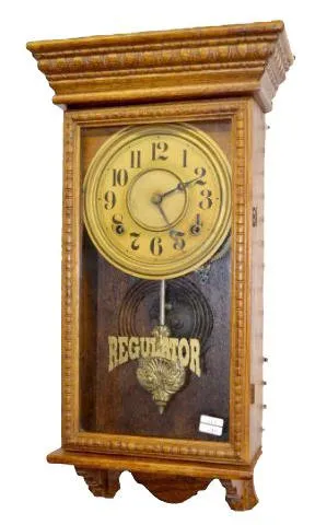 Ingraham Oak 1/4 Store Regulator Clock In a carved case with a T & S movement. (The dial is stained.) 19 1/2" Tall Not tested.