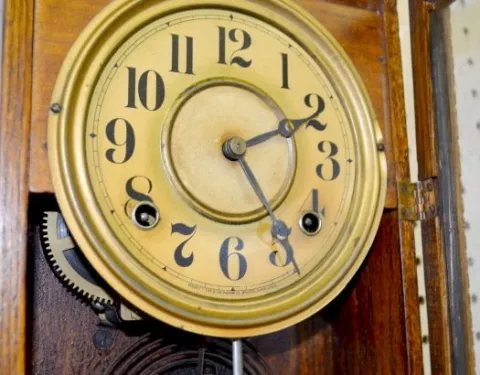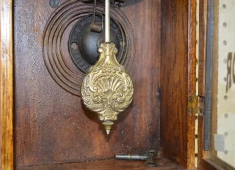 In a carved case with a T & S movement. (The dial is stained.) 19 1/2" Tall Not tested.