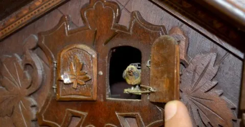 Antique German 3 Weight Cuckoo & Quail Clock