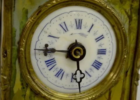 Carriage Clock w/Tin Lithograph Decoration