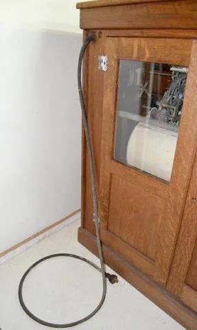 Lrg. Oak International Time Clock w/Iron Wheel Electric. Not tested.