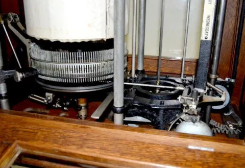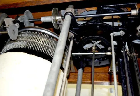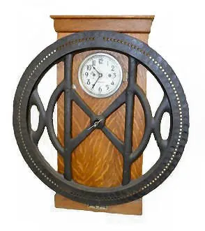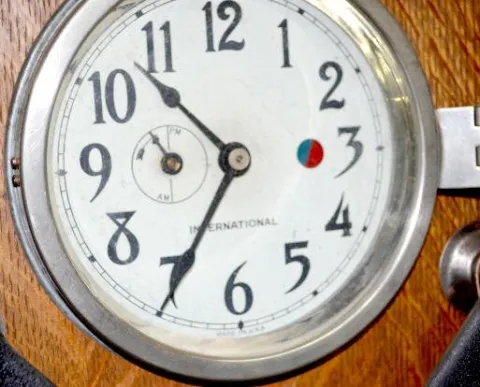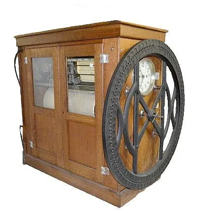 Lrg. Oak International Time Clock w/Iron Wheel