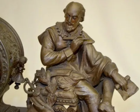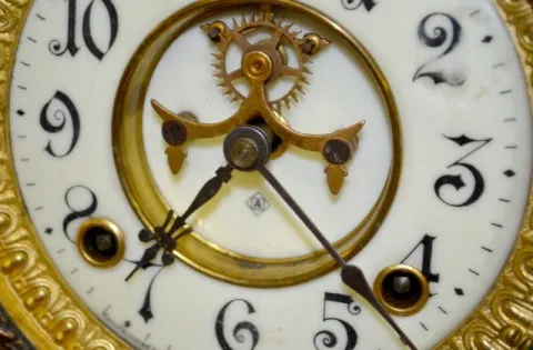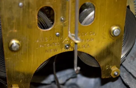 With a marked T & S movement; open escapement and marked porcelain dial. Not tested. (There is some minor roughness to the case.) 14 1/2" Tall x 17 1/...