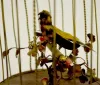 In a brass frame. When wound, the head turns, the beak and tail move and it whistles. 11 3/4" Tall