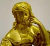 Barbot De Paris Silk String Mantel Clock Bell strike movement marked "ETABLISSEMENT". The dial is marked "Roger A Marseille". The Dore' figure by the clock has a book near her. The case is wood, marble, bronze & bronze Dore'. 14" Tall x 12 3/4" Wide (Has the pendulum but string suspension is not properly set.)