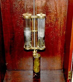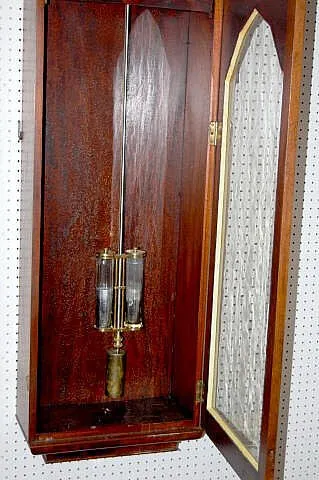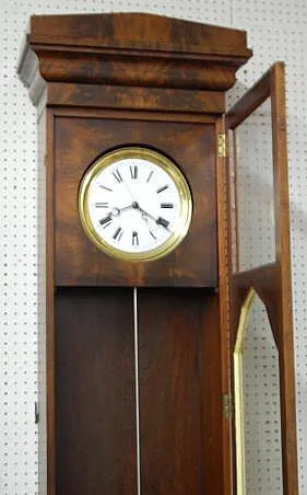 Swiss with brass weights, 2-jar mercury pendulum, and a porcelain dial. 71 1/2" Tall; 22 1/2" Wide; Dial - 9 1/2" Diameter Not tested.