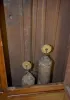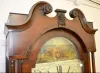 In a mahogany case with a signed metal dial with seconds bit, a male lion with animated eyes and dead deer. (There is some roughness to the case.) 86" Tall Not tested.
