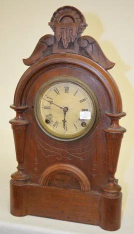 Time & Strike Mousehole Shelf Clock T&S; paper dial; has pendulum. 18 1/2ÒT Running at this time. (Dial discolored; maker unknown.)