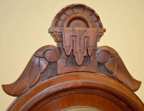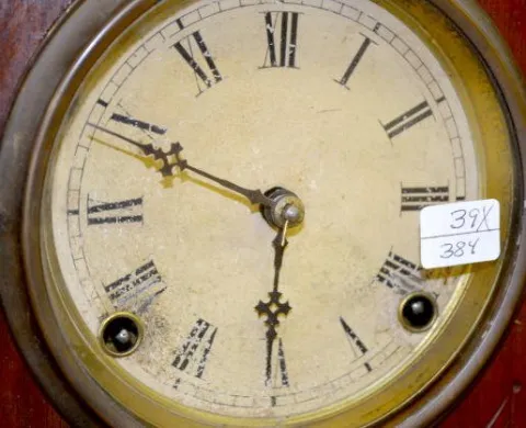 T&S; paper dial; has pendulum. 18 1/2ÒT Running at this time. (Dial discolored; maker unknown.)