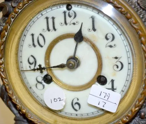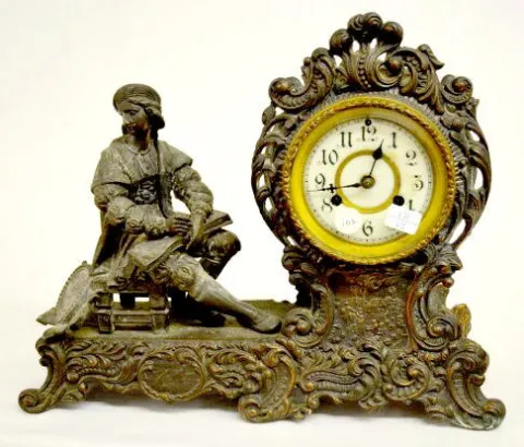 Anonymous (not verified) 24 October 2024 Clock image thumburl Waterbury Antique Artist Male Statue Clock (Rough patina, porcelain dial has damage.)... Subscribe here Sort Price Subscribers only Sold Date Subscribers only