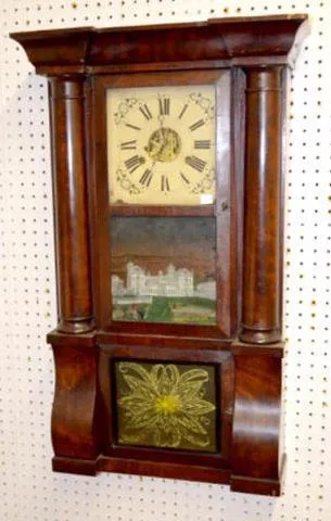 With a signed T & S movement, a painted middle door and a stenciled lower door. The pendulum is with the clock. (There are no weights with the clock. ...