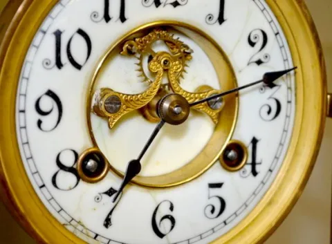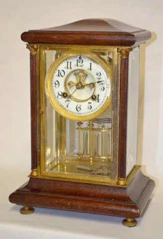 T&S; open escapement; porcelain dail; brass trim. 12ÓT (Dial has hairlines, worn trim and case.)...