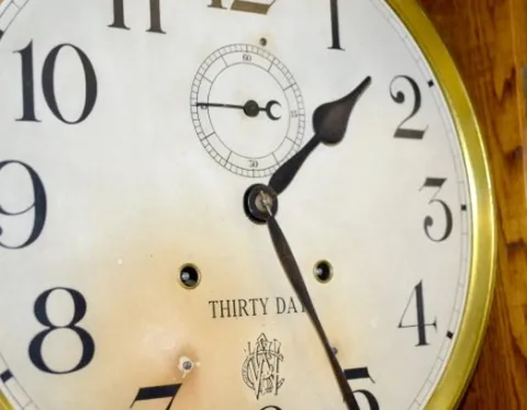 30 Day movement with seconds bit. (The original dial is stained.) 38Ò Tall Not tested....