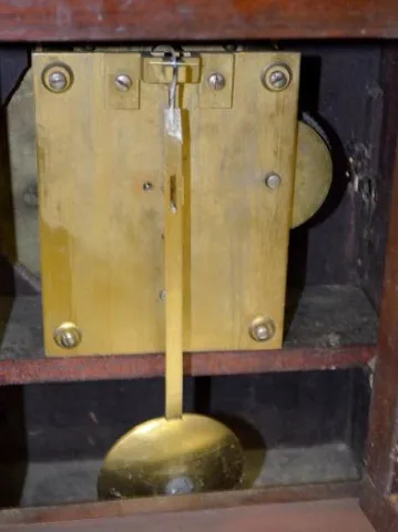 In a mahogany case with a T.O. movement; an engraved dial and the pendulum. 13 1/2Ó Tall x 11 1/2Ò Wide There may be minor, as expected, scuffs and mars to the case. Not tested.