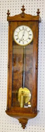 One-Weight Vienna Regulator Clock Brass trim; porcelain dial with seconds bit; signed Glashutte/Sachs No. 1141. 42ÒT (Case has roughness.)