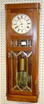 1 Wt. Antique Vienna Regulator Wall Clock With a TO movement; a porcelain dial and a leaded glass door. The weight and pendulum are with the clock. 35Ó Tall Not tested.