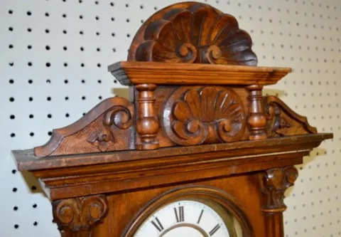 2 Weight Carved Vienna Regulator Wall Clock (One of the side glass pieces is damaged.) 39Ó