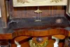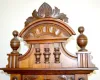 Ornate brass dial and pendulum; T&S. 38ÓT (Wood split on top side of door.)