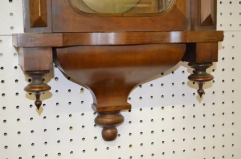 Three-Weight Vienna Wall Clock Carved case, brass trim, porcelain dial. 48ÓT (Weights dented and touched up.)