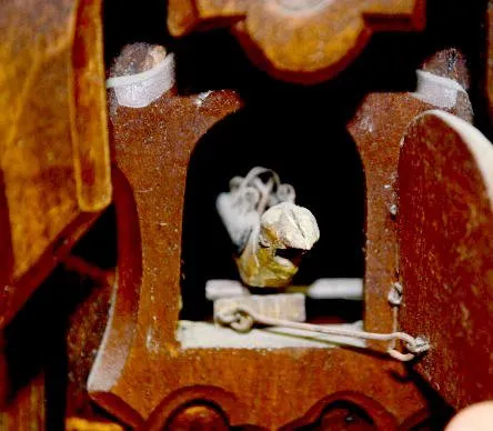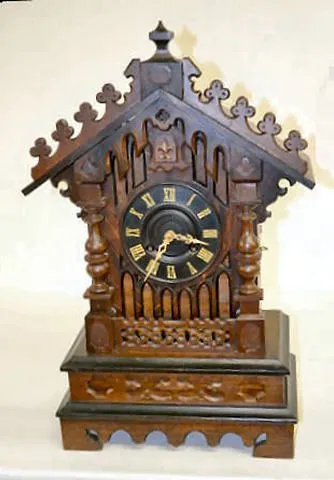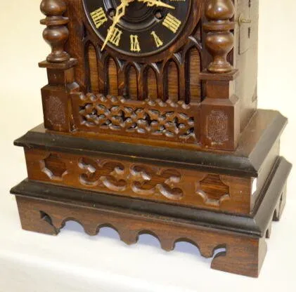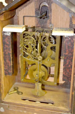 Large Fusee Short Cuckoo Clock Time; spring chime; nice case; spring-wound chime; fusee around time.