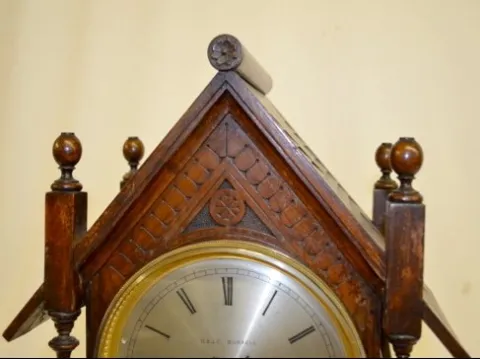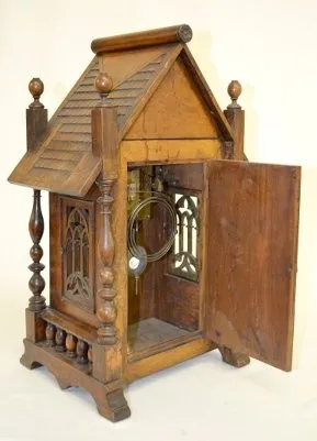 Dial marked ÒG. & J.C. Burrell SheffieldÓ; great case with carved swingers on roof.