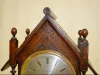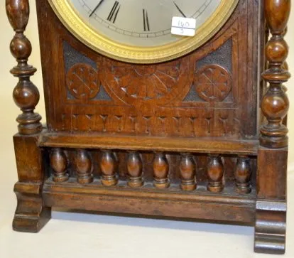 English Bracket Time and Strike Clock Dial marked ÒG. & J.C. Burrell SheffieldÓ; great case with carved swingers on roof.