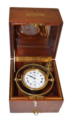 Elgin 21J Chronometer in Marked Elgin Box Up and Down indicator with gymbal.
